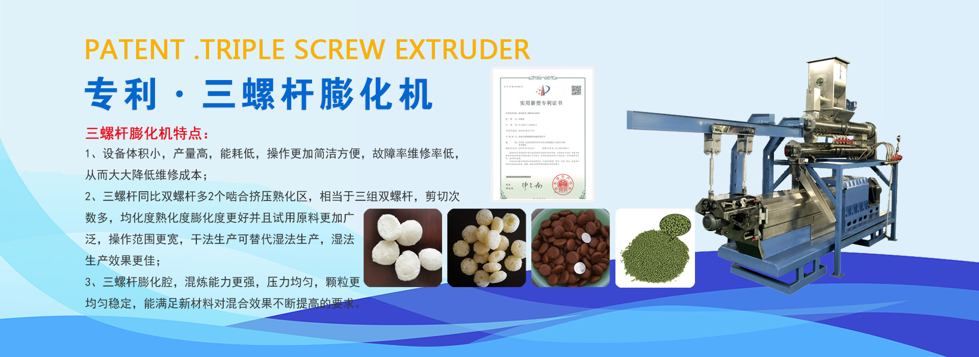 濟南百脈海源膨化機械有限公司是集科研開發、制造培訓、國際貿易為一體的高新技術企業,并擁有國家專利十余項。十幾年來一直致力于擠壓膨化工藝及設備的開發和研究,先后研制開發了單螺桿、雙螺桿、專利三螺桿生產技術及設備,現已成為國內主要擠壓膨化生產設備專業生產廠家。公司立足國內市場,拓展國際市場,產品銷往全國各地,并遠銷到亞洲、歐洲等國家地區,市場占有率逐年增長。公司將繼續進取,勇于創新,與國內外同行一起為促進我國膨化機行業發展作出貢獻!